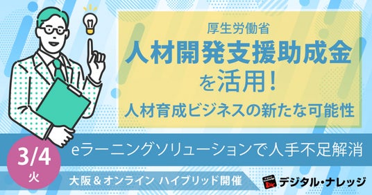 タイトル 厚生労働省 人材開発支援助成金を活用!人材育成ビジネスの新たな可能性