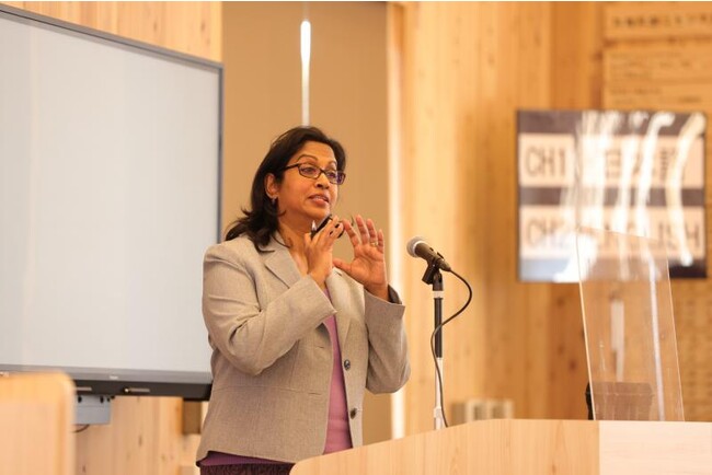 シリマン局長は、数日前に竣工したばかりの共育共創コモンズ(※)で、「技術革新の波を捉える‐公平性のあるイノベーション」と題して、本学学生・教職員、地域の方や高校生ら約100人の参加者に対して特別講演を行いました。局長からは「私の講演が、フロンティアテクノロジーに関連して先進国と開発途上国の間にある格差をなくすために、また、これらのテクノロジーにより誰をも排除しない持続可能な社会へと導くために、政府、企業、市民社会、国際社会ができることについて、より良いアイデアを提供できることを願っています」等とのお話があり、参加者が熱心に耳を傾けました。
