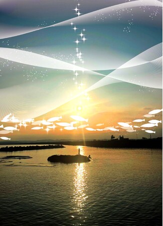友達と朝の海に行った時、綺麗だなと思って撮った写真を使いたいと思いこの写真を使ってデザインしました。