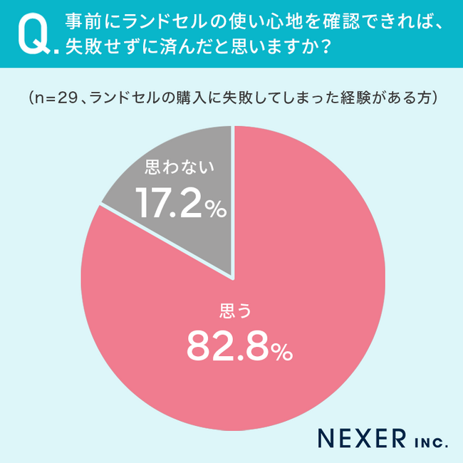 82.8%の方が事前にランドセルの使い心地を確認できれば、失敗せずに済んだと「思う」と回答しています。
