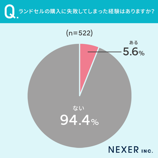 5.6%の方が、ランドセルの購入に失敗してしまった経験が「ある」と回答しています。