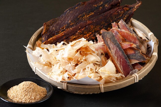 まるごとのブリを長時間茹で丁寧に抽出したブリのエキスと、豚や魚介から出汁を取り透き通った函館塩ラーメンスープをかけ合わせたハイブリットスープは、あっさりしているがしっかりとコクを感じられるのが特徴。脂分が少ないブリだから作ることができる『ブリ節』の粉末が付属されており、溶かしながら食べると香りやうまみの変化が楽しめます。食品加工研究センターの研究によるとブリ節は、うまみ成分はカツオ節など他の節と同等程度に高い数値が記録されていて、後味が濃厚ということから出汁に向いていると発表されています。