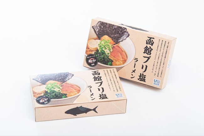 北海道函館市は、日本有数の「イカの産地」として有名でしたが、近年、地球温暖化の影響により海水温が上昇し、冷水を好むイカの漁獲量が激減する一方で、これまで漁獲量が少なかった『ブリ』が急増しています。しかし、地域ではブリを食べる食文化が無かったため消費量は全国平均の半分程度と低迷。また、函館近海で獲れるブリは、『イナダ』と呼ばれるサイズが小さいものや、脂がのっていないパサつき感のあるブリが多いこともあり、イメージの改善が急務でした。そこで一般社団法人Blue Commons Japanは、身に脂分が少ないブリの特徴を最大限に活かし、ブリから出汁をとることに注目。食を通じて豊かな海を未来へ繋いでいくために推進するプロジェクト「函館ブリリアントアクション」を掲げ、ブリをきっかけに海の変化を知ってもらうことをコンセプトにし、開発におよそ1年かけ今年6月に函館ブリ塩ラーメンを完成させました。
