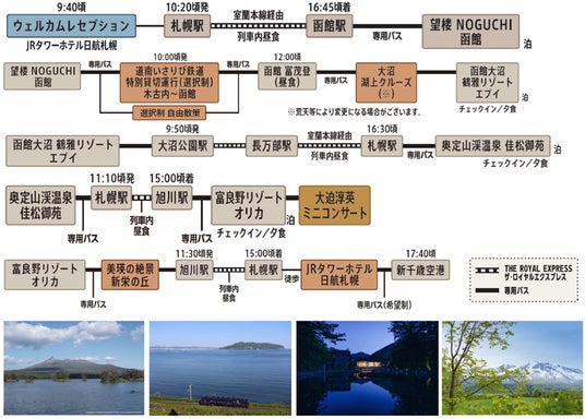 2026年夏のTHE ROYAL EXPRESSの旅では、本列車初の道南方面へ運行する新たなプラン「HOKKAIDO ~ NORTHERN COASTLINE~」をご用意しました。また、新たな食の匠として札幌や道南エリアの名店の料理人も新たに加わり、お客さまの記憶に残るオンリーワンの「美しさ、煌めく旅。」へご案内します。