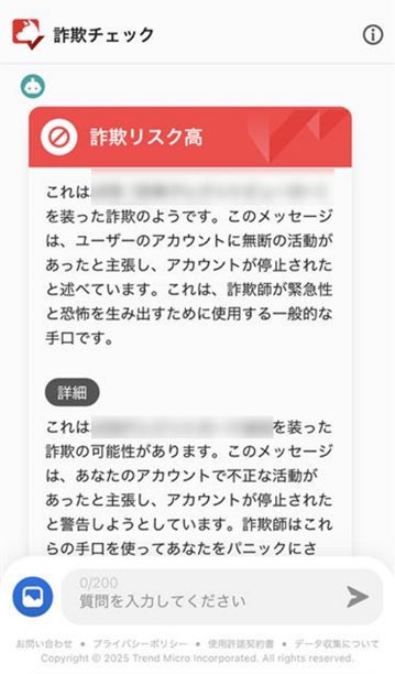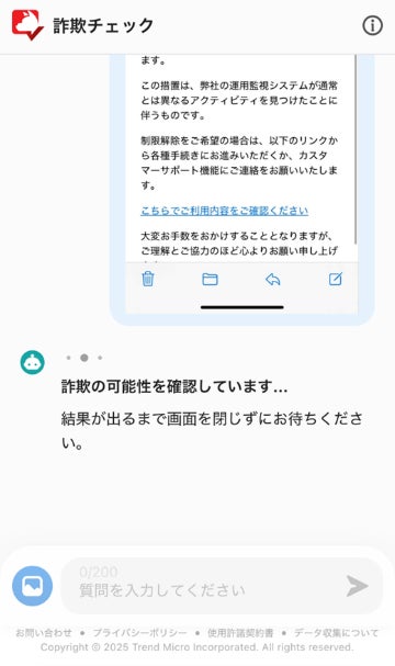 ※3トレンドマイクロが提供するスマホ向け詐欺対策専用アプリ「トレンドマイクロ 詐欺バスター」で提供する詐欺チェック機能と同等の機能です。