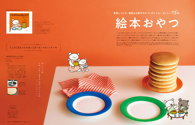 『しろくまちゃんのほっとけーき』、『ぐりとぐら』のカステラ……おいしい絵本を読むと、子どもから「食べてみたい!」とリクエストされることも。大変だなあ、とは思うけど、一緒に楽しめば、親子にとって一生の宝物になりますよ。簡単に作れるレシピを揃えましたのでぜひお試しを。さらに作らなくても楽しめる「おやつ絵本」ガイドや、お菓子と絵本のリンクコーデも。どうぞ親子で幸せの時間を味わってください。