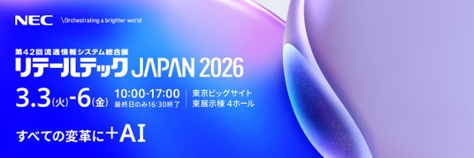 NECは、2026年3月3日(火)~6日(金)に東京ビッグサイトで開催される流通・小売業向けの国内最大の展示会「リテールテックJAPAN 2026」に出展いたします。