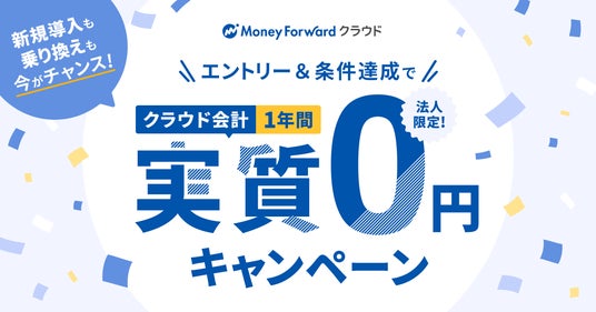 株式会社マネーフォワードは、2024年5月13日(月)から9月30日(月)までの期間、中小企業を対象に「クラウド会計 1年間実質0円※1キャンペーン」を実施します。期間中に『マネーフォワード クラウド』の年額プランを契約した法人に対し、基本料金1年間分のAmazonギフトカードをプレゼントします。
