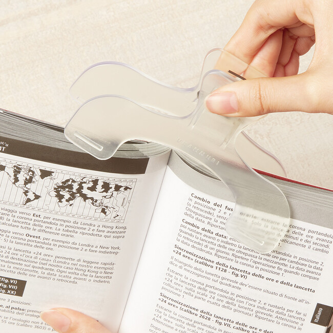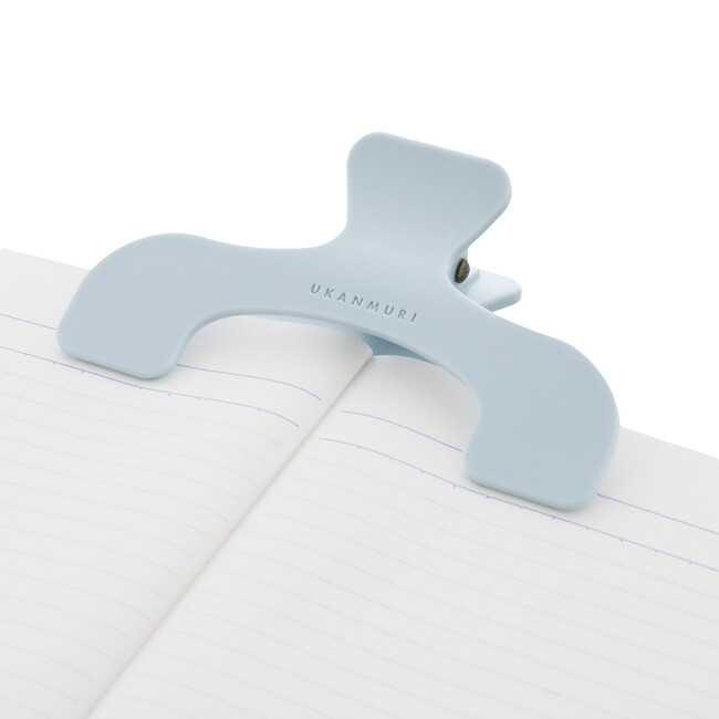 ウカンムリの形をしたクリップ。ノートの中央部分を避けて留められるため書いた文字を隠さない。