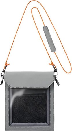 長さ調整が可能なショルダーストラップ付きのポーチ。