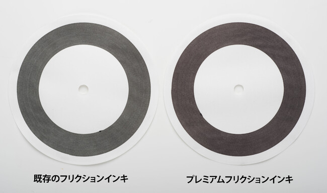 従来品と比べ、ブラックのインキ濃度を30%高め、1本当たりのインキ容量も70%増量した新開発の「プレミアムフリクションインキ」を搭載した消せるボールペン。