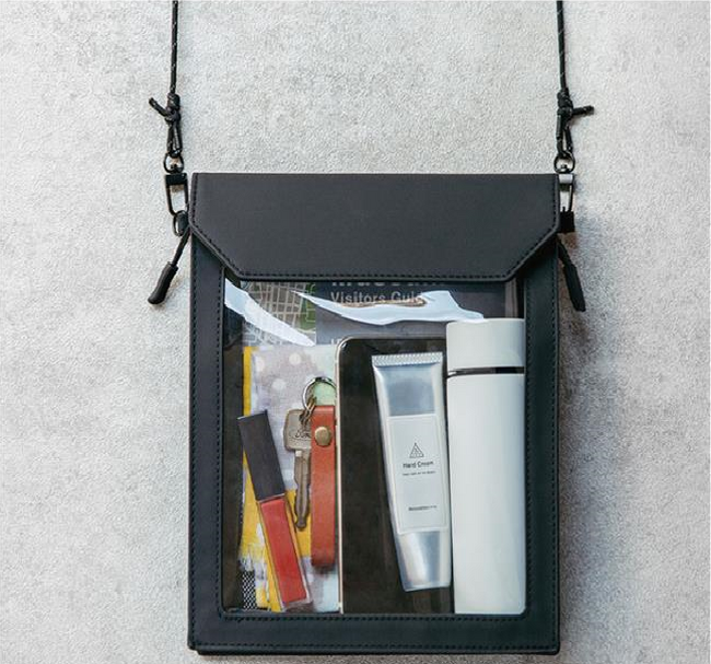 透明ポケットで中身が一目でわかり、スマートフォンを中に入れたまま画面操作も可能。