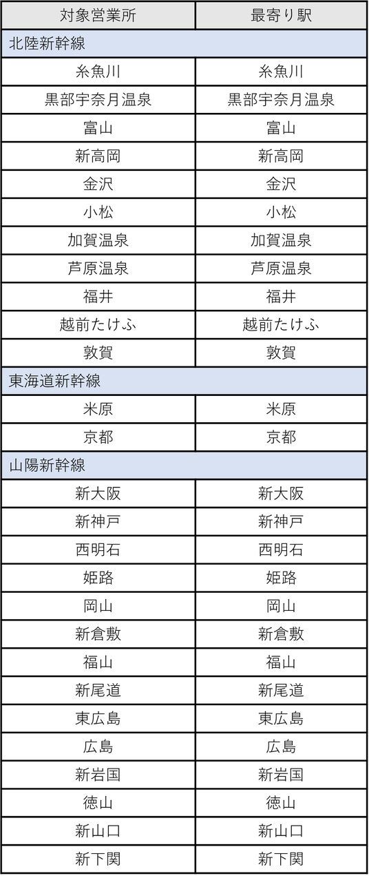 ※東海道新幹線内完結、九州新幹線内完結、北陸新幹線(上越妙高~東京)完結となるご利用は対象となりません。