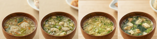 お湯を注ぐだけで簡単に調理できるフリーズドライの「食べるスープ」シリーズに4アイテムを追加し、味噌汁の品揃えを拡充します。味噌汁は今回の4アイテムを含め合計8アイテムで展開します。