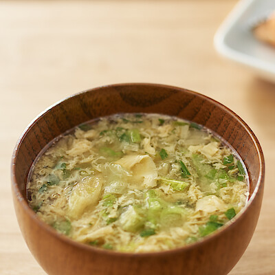 かき卵とキャベツを合わせた具だくさんの味噌汁です。