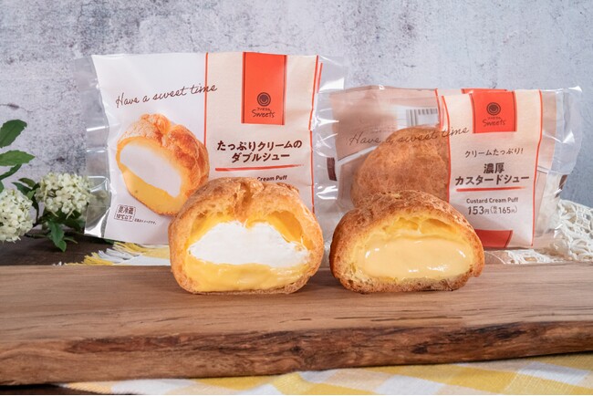 今回環境に配慮した包装に変更するシュークリームは、「ファミマルSweets」の2023年度年間販売数第1位「たっぷりクリームのダブルシュー」172円(税込185円)と第2位「クリームたっぷり!濃厚カスタードシュー」153円(税込165円)です。「たっぷりクリームのダブルシュー」は4月19日(金)から、「クリームたっぷり!濃厚カスタードシュー」は6月以降順次、全国のファミリーマート約16,300店で新しい包装に切り替えいたします。