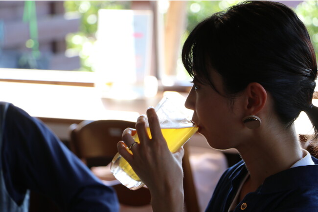 その後、山の辺の道を進み、見つけたのは山の茶屋。ミカンの原種と言われている大和橘の果汁を使ったクラフトビールで旅の疲れを癒します。