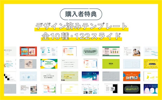 購入者特典のして全10パターン、122スライドのテンプレートがダウンロードできます。
