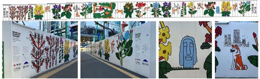 〇作品概要:太田宏介氏の既存作品の中から、動植物をモチーフとした15点を厳選し、仮囲い全体に