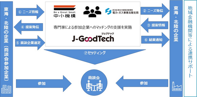 本商談会は、商談成約率の向上を図るため、あらかじめ公開された北陸・東海地域の企業のニーズに対して、同地域の企業が自社の製品・技術・サービスを提案する逆見本市形式の商談会です。