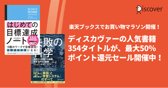 1/9から1/16までの間、楽天ブックスにて、ディスカヴァーの書籍354点が、10~50%ポイント還元になるお買い物マラソンセールを開催中です。