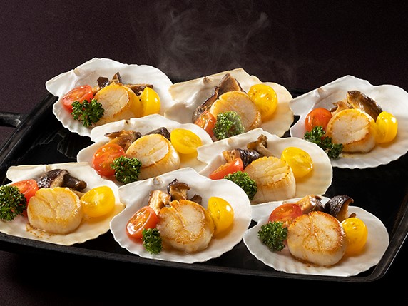 ・帆立貝と茸の殻焼き トマト入りバター醤油ソース
