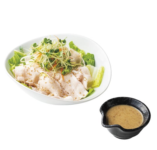 「有機ロメインレタスの冷しゃぶサラダ~特製わさび胡麻ドレッシング~」 499円(税込548円)