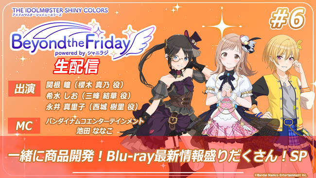 さらに、放送直前の5月17日(金)23:00からは「アニメ『アイドルマスター シャイニーカラーズ』 -Beyond the Friday-」を生配信でお届けいたします。
