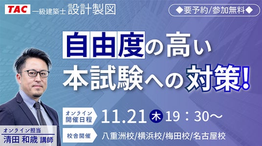 さらにその「自由度の高い本試験に向けてどのような準備が必要なのか」について、TACのカリキュラムやそのポイントも交えながらお話します。来年の合格に向けた準備の足掛かりとしてください。