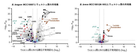 図3:ビフィズス菌とウェルシュ菌を共培養した際のウェルシュ菌の遺伝子発現変化