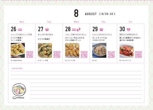 二次元コードを読み込めば、9~11月のその日の人気レシピが見られます。