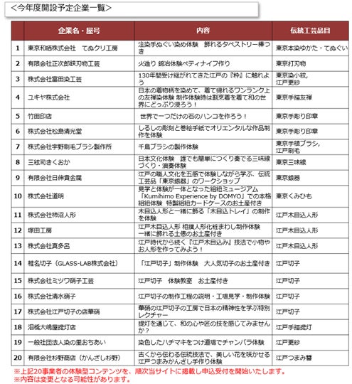 取扱体験:東京の伝統工芸品の製作体験 (20社を予定)