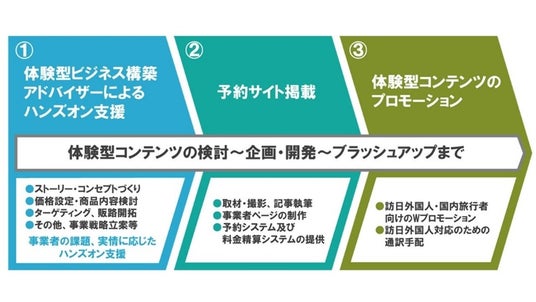 東京の伝統工芸品事業者に対し、製作体験等を核とした誘客、事業化、顧客開拓までをパッケージ化した新たなサービスによるビジネスモデル構築を支援することで、東京の伝統工芸品産業の活性化に寄与することを目的としています。具体的には、1.体験型ビジネス構築アドバイザーによるハンズオン支援、2.予約サイト掲載、3.プロモーション・販売支援を実施しています。