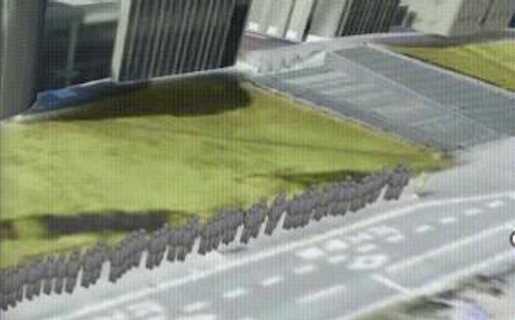2.混雑状況の可視化: XR技術を用い、分析した混雑状況を仮想都市空間内でリアルタイムに可視化します。