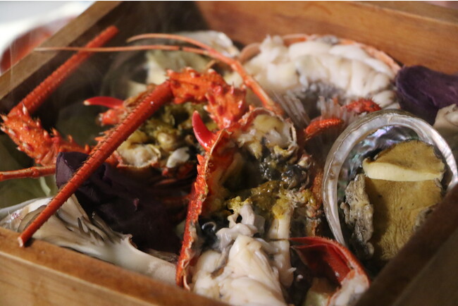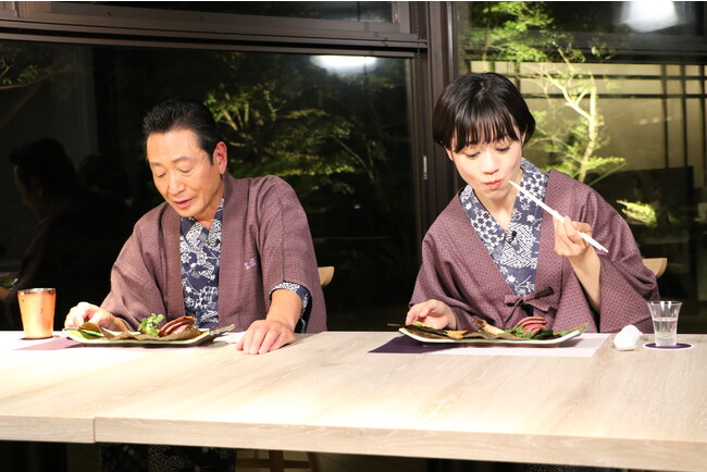 旅のしめは湯宿・東園へ。雲仙の野菜や橘湾の魚介を使った贅沢なコースで旅の疲れを癒します。