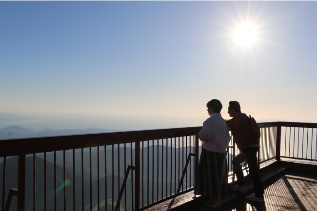 続いては標高1300メートルの雲仙岳の山頂付近まで行くロープウェイへ。山頂の展望所から間近の普賢岳や、有明海の絶景を楽しみます。