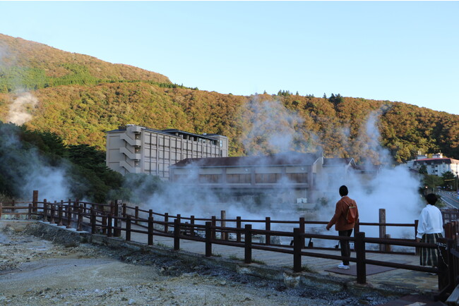 麓に降りた2人は雲仙の温泉街を散策。温泉と蒸気が噴き出す「地獄」で蒸して作る温泉たまごをいただきます。さらに温泉水を生地に練りこんだ銘菓「湯せんぺい」も試食。果たしてそのお味は?