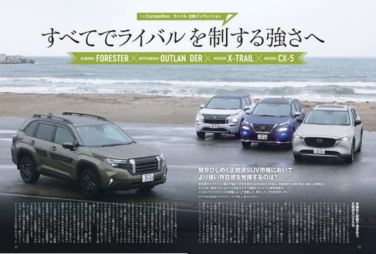 PHEVを採用する三菱アウトランダー。走りはすべてモーターというEV感覚のe-POWERを搭載する日産エクストレイル。力強さと燃費の良さが自慢のクリーンディーゼルを擁するマツダCX-5。これら市場での強力なライバルに対して2.5Lストロングハイブリッドが与えられた新型フォレスターの実力や如何に!?