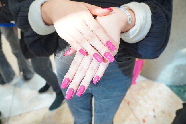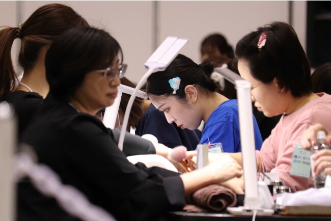 爪の形や美しさを競い、消毒・ケア・カラーリングを施すネイルケア競技は、学生だけでなく一般のネイルスクール生も加わるハイレベルな戦い。全国1位となった学生は、「爪表面をどれだけ美しく見せられるかにこだわって施術をしました。周りの方からたくさんおめでとう!と言ってもらえて、すごく嬉しいです。」と喜んでいました。