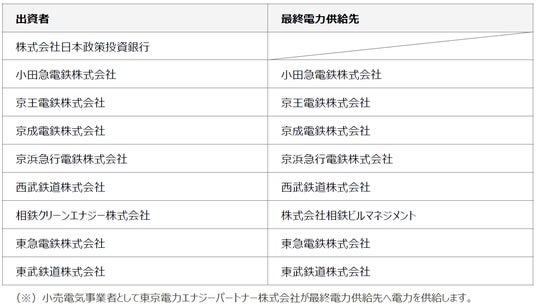 【出資者および最終電力供給先】
