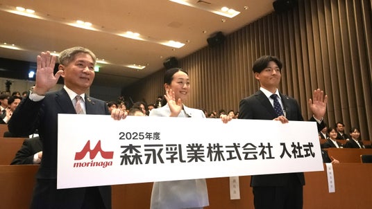 森永乳業株式会社(東京都港区)は、4月1日に新入社員約153名を迎え、2025年度の入社式を執り行いました。当社は、2025年4月13日に開幕する大阪・関西万博「大阪ヘルスケアパビリオン」のプレミアムパートナーとして出展参加することから、開幕に向けて機運醸成を図るべく、入社式の後半では、メイン展示・体験型コンテンツである「VR腸内クエスト~手×声×脳波で戦う未来型シューティングゲーム~」を、この度の入社式にて一般のお客さまに先駆けてお披露目しました。また、森永乳業宣伝部腸の浅田真央さんにサプライズ登場いただき、新入社員代表1名と「ガチンコVRバトル」を繰り広げました。