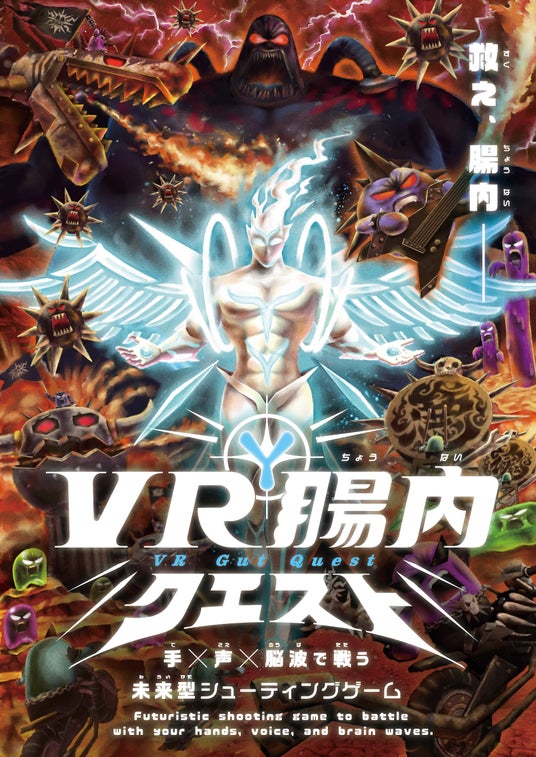 ゲームの舞台はあなたの腸内。悪化した腸内に潜む悪玉菌を手の動作や、発声、脳波を使って戦う未来型シューティングゲーム!