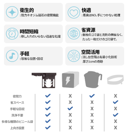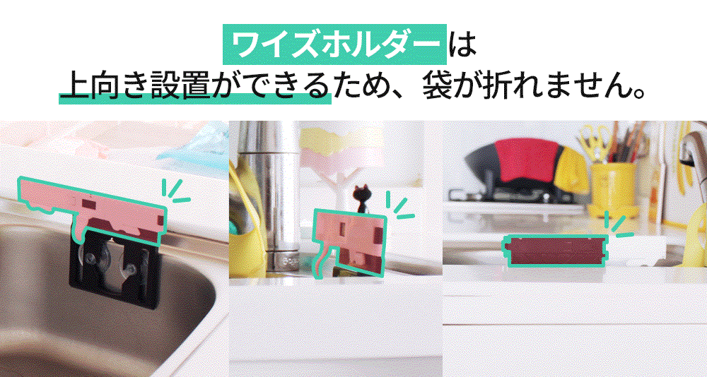 「Wiseholder」(ワイズホルダー)なら、袋一枚でゴミ処理が完了するため、シンクから生ごみを移動させることなく効率的に処理することができます。