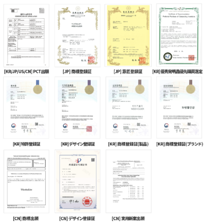 ワイズホルダーは、様々な国で特許技術とデザインなどが認証された製品です。