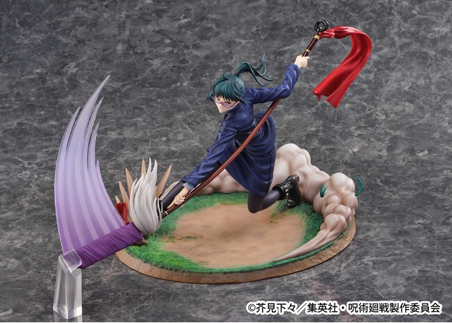 TVアニメ「呪術廻戦」より禪院真希が1/7スケールフィギュアで登場!大刀を振り下ろした躍動的な瞬間を切り取り、立体化しました。舞い上がる砂煙や大きく揺らぐ装飾で勢いある戦闘シーンを表現。力強く戦う姿にご注目ください!
