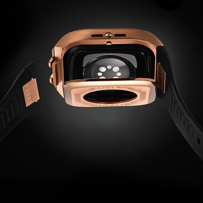 HUMBLE RICH(ハンブルリッチ)が開発した「Plug & Rich Watch」システムにより、ケースサイドのボタンを押すだけで裏蓋を開閉が可能。簡単にAppleWatchを交換する事ができます。