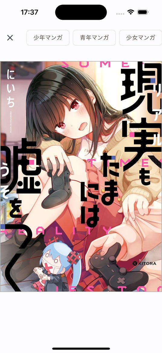 2)縦スワイプで次々と作品が切り替わるので、読みたい本を表示する