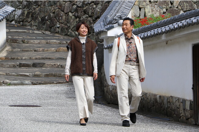 旅のお相手は吉川亜樹。2人はまず「播磨の小京都」として親しまれている名城「龍野城」の城下町をぶらり。