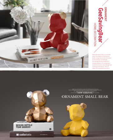 「GeeSavingBear」(ジーセービングベア)は 、ジオメトリック形状のユニークなデザインのくま型貯金箱です。