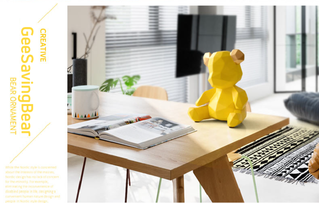 しかし、この「GeeSavingBear」は北欧スタイルかつジオメトリック形状を採用しているため、シンプルなお部屋にもマッチします。